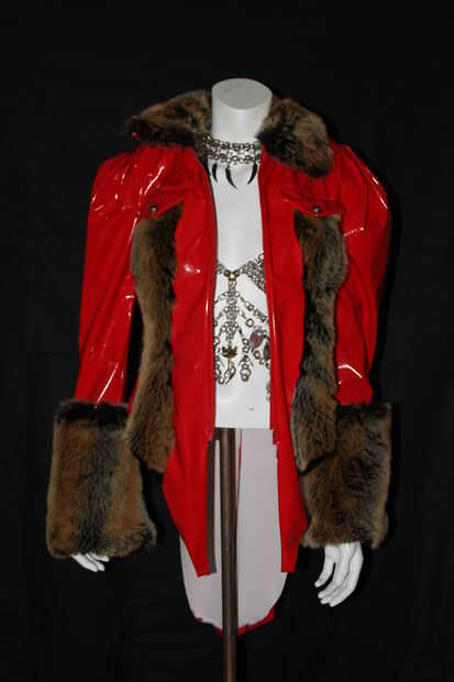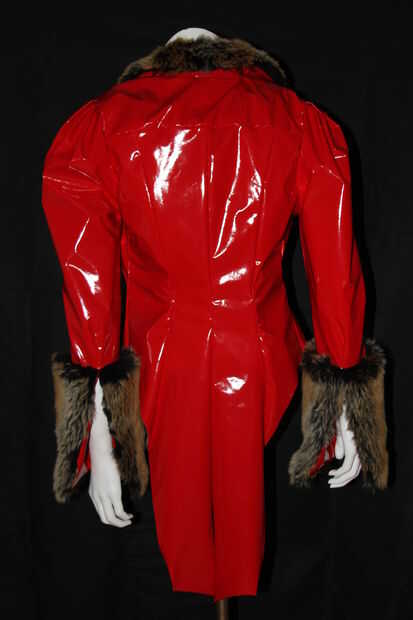 Para la capa tomé patrón de chaqueta de la manera normal de suma. I cortar las piezas del patrón del frente y atrás, ponerlas al lado de uno con las bases más bajas en línea y fija con cinta adhesiva removible una hoja grande de papel, dibujó una cola y aletas delanteras de la suma y dibujó redondos a los lados conectar frentes y partes posterioras. Me acortó el sleaves por unos 20cm y reemplazándolas con manchettes fakefur, dejando abierta la costura trasera.