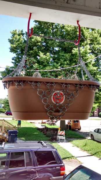 Asegúrese de que usted cuelgue esto con algo que es capaz de soportar el peso de todo el proyecto. Mina pesaba alrededor de 40 libras usé 2 suspensiones de bicicletas que cuestan 49 centavos por pieza. Todavía tengo que ver cómo sostiene a viento, pero es fantástico y estoy contento con él. Gracias por leer mi Instructable y espero que todos ustedes encuentran informativo y creatividad inspiradora!