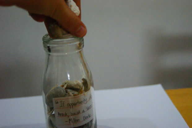 Llenar el vaso con cáscaras, asegurándose de que el papel no está cubierto. Puesto que mi presupuesto era bastante corto, tiré el papel para arriba un poco.