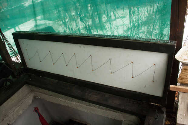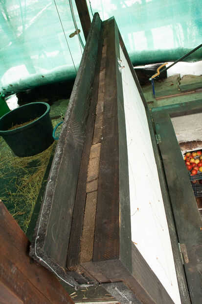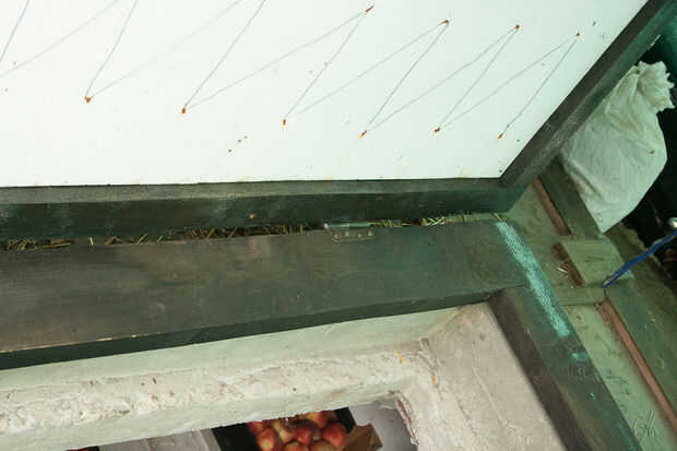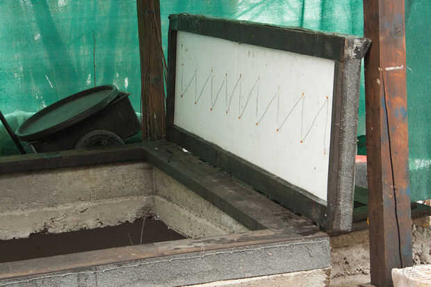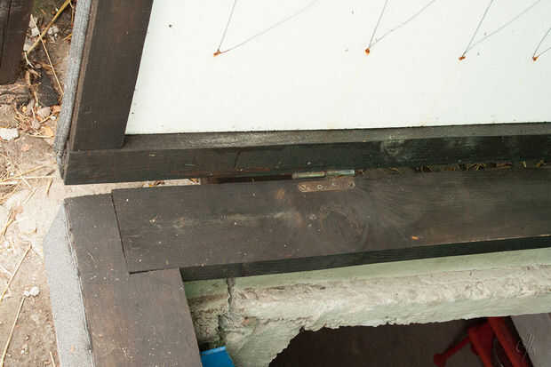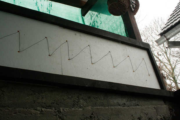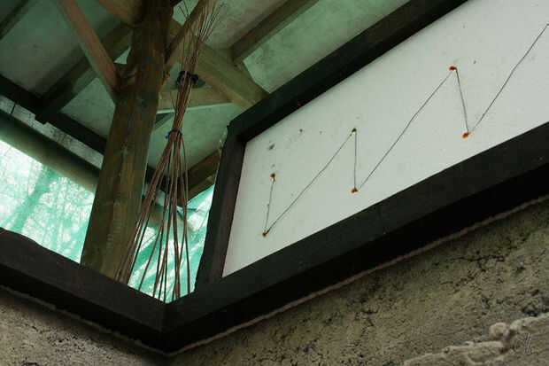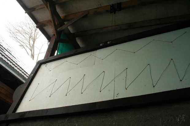 Materiales utilizados: tablones de abeto, asfalto impermeabilizante membrana ampliaron poliestireno, alambre de acero, clavos,