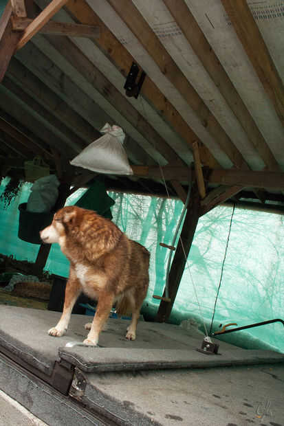 Construí esta puerta en 2012. La puerta principal es bastante pesada, así que había equipado con un sistema de contrapeso.