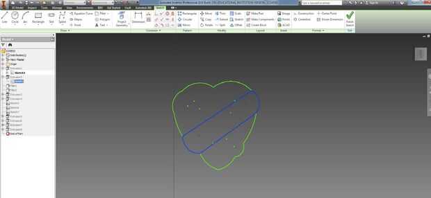 Esbozo de dos líneas paralelas como se muestra arriba en el centro del corazón. Luego lo sacan por fuera 3,5 mm.