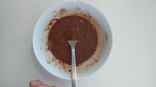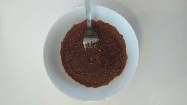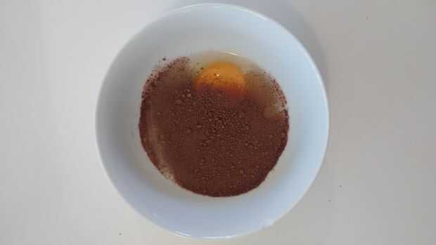 Mezclar el huevo con el 3teaspoons de cacao en polvo y revuelva muy bien. Si te gusta dulce, agregar azúcar aquí.