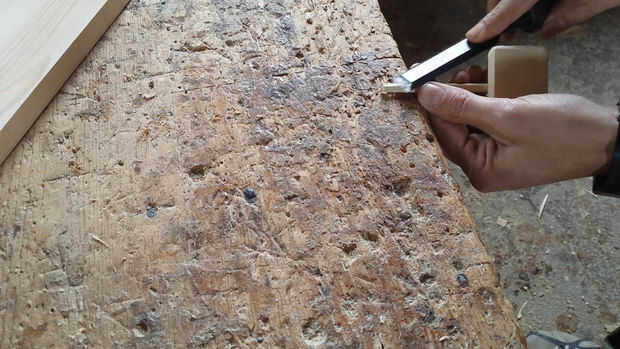 El cartel utilicé una pieza de 6 x 4,5 cm de la madera y por el post un 0.8 x 0.8 x 10 cm.