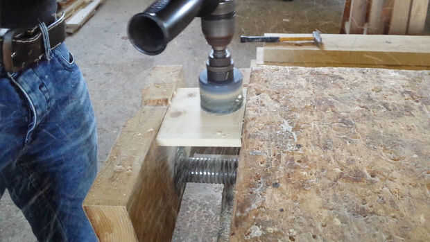 Corte un disco de 5cm utilizando un agujero de 5cm vio y perforar un agujero de 4cm en el mismo. Eso me dio un anillo, que os adjunto en los comederos de base con algun pegamento super