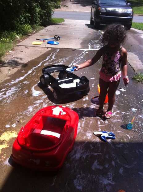Este paso tomó unas 2 horas de lavado con la ayuda de mi asistente poco. Probablemente habría sido mucho más rápido y la secadora para hacerlo por mi cuenta pero no tan divertido. Mientras que todas las piezas se secan, nos dirigimos a Walmart para suministros. Se utilizó cartilla de Rust-Oleum de plástico la pintura de aerosol, Kryon interior exterior pintura en aerosol y un final claro de Kryon. También hemos recogido hojas un par de tatuajes de pared $.99.
