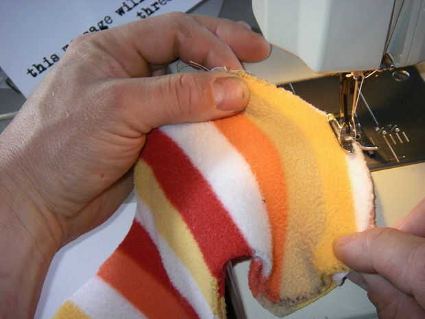Tire de la tela como se muestra a estirarlo. Eso hará una costura que también se extiende cuando se hace.