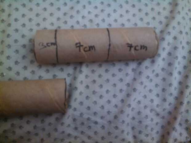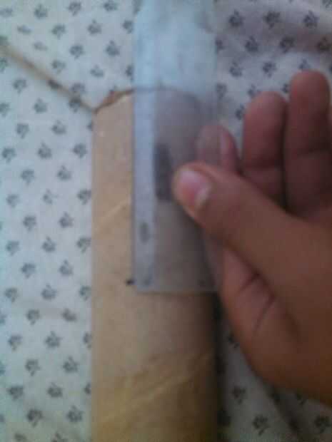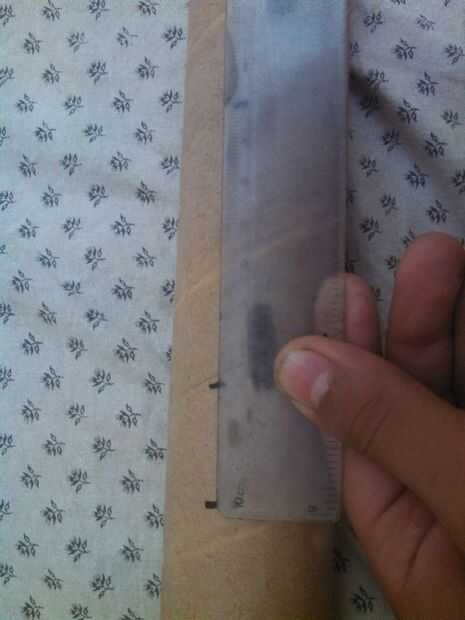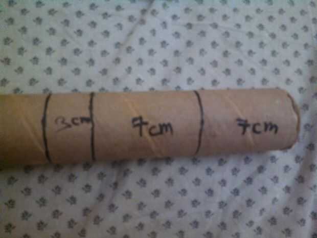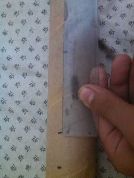 mi tapa mide hasta 7 cm... Ahora tome su escala y lugar cerca del tubo de cartón vacío y medir 7 cm y ponga una marca en el it.as que se muestra arriba...