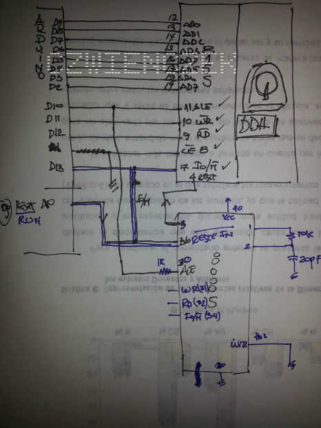 Observar el bloque represen el ARDUINO (NANO) funciona como elemento de comunicación puerto USB al PC (Asi uso controladores propios de Arduino, pecado problemas de usar drivers de USB filtro-regulador) se encuentra el autobús kitesurfing (compatible con varios integrados de INTEL de 8 Bits, 8085, 8051, 8052...) justo con el puerto digital del ARDUINO D2... D9 vs AD0... AD7 (12..19 pinos) del 8155 y luego uso los la puertos D10... De puerto D13 como control del 8155 (PIA). Mediante el uso del Arduino desarrollo una funciones de Lectura y Escritura de MEMORIA del 8155. Es importante, señalar el uso de del bus de control del 8155.