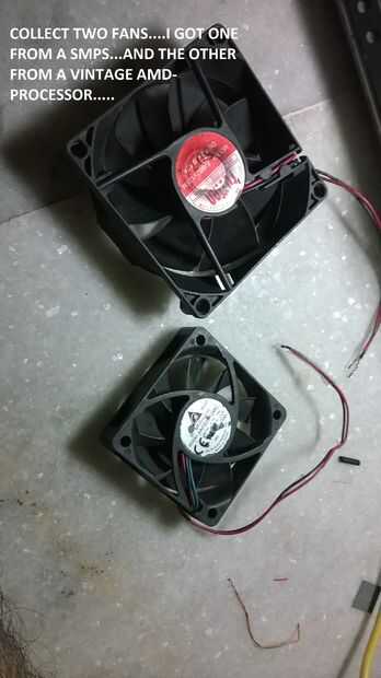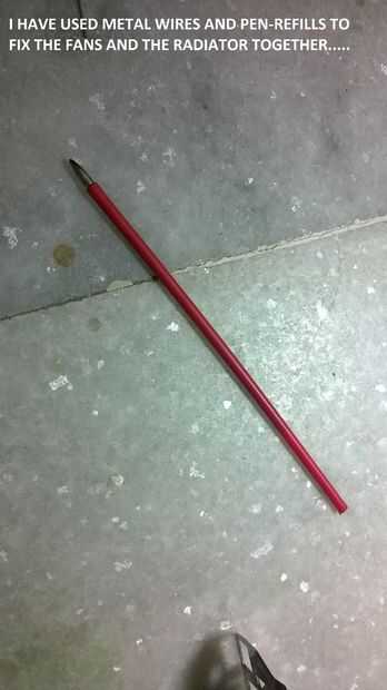 Coloque ambos los ventiladores con el radiador con alambre de hierro. Utilice los orificios de tornillo en los ventiladores para un mejor soporte al conectar los ventiladores. He utilizado repuesios de la pluma para sellar la fijación (como se puede ver en la imagen). Puede conectar los ventiladores en modo alguno le gusta, pero asegúrese de que no crea obstrucción a los fans.