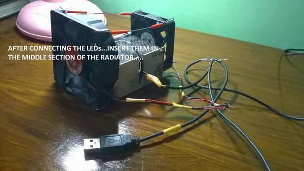 Usted necesitará un adaptador de 12V para alimentar los ventiladores. Recuerde que los fans de ambos se conectarán al mismo adaptador. El LED se alimenta por la conexión USB. Así que ahora, solo Conecte y disfrute!