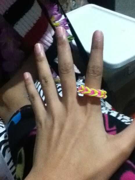manera fácil de hacer una pulsera de cola de pescado en cualquier lugar.Paso 1: materiales Todo lo que necesitas esSu elección de colores de gomasy un clip C o SPaso 2: Poner la primera banda de goma de color en una figura de ocho en los dos dedos. P