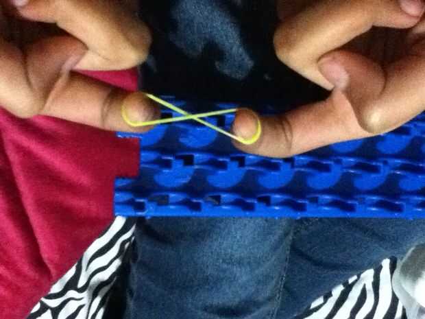 Espina de pescado es una de las mejores bandas de telar!Paso 1: Lo necesitarás: ♡Hook♡Bands♡2 lápices/telarPaso 2: Cómo empezar! ♡Take cualquier banda y hacer un ocho! Asegúrese de introducirlo correctamente en los lápices de las clavijas.Paso 3: Col