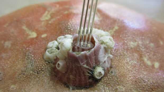 Si el shell tiene un percebe y es grande mod, otra puede ser poner un LED en su interior. Taladre un pequeño orificio en la cáscara sólo lo suficientemente grande como para pasar los cables de LED. Conecte permanentemente el LED con el adhesivo caliente.