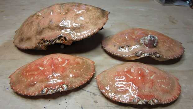 La aplicación de la UG pasa a un lado a la vez. Tiene que completamente endurecido en un lado antes de aplicar el otro lado. Puesto que tarda unas 24 horas para endurecer, todo este proceso de cubrir una concha de cangrejo toma aproximadamente 2 días para completar. Téngalo en cuenta al buscar un lugar para dejar que la UG a endurecer. Para mí, tuve que encontrar un lugar donde mis gatos no Frotaría contra las cáscaras. Por último, asegúrese de cubrir completamente la cáscara con el polímero para que se la máscara todo el olor a podrido que puede haber quedado después de la limpieza.