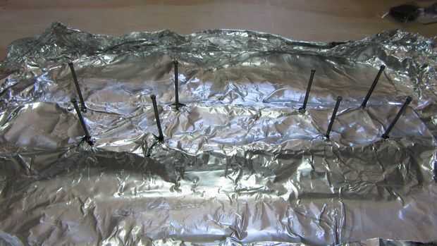 Construí algo muy simple: los clavos en un bloque de madera con un recipiente de papel aluminio. Los clavos se colocan para dar cabida a una variedad de tamaños de la cáscara. La bandeja de goteo se hace de 2 capas de papel de aluminio para estar seguro.
