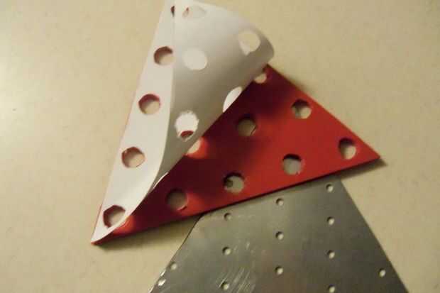 Pegue el primer triángulo de espuma a la segunda, después, que pegue al triángulo de metal.