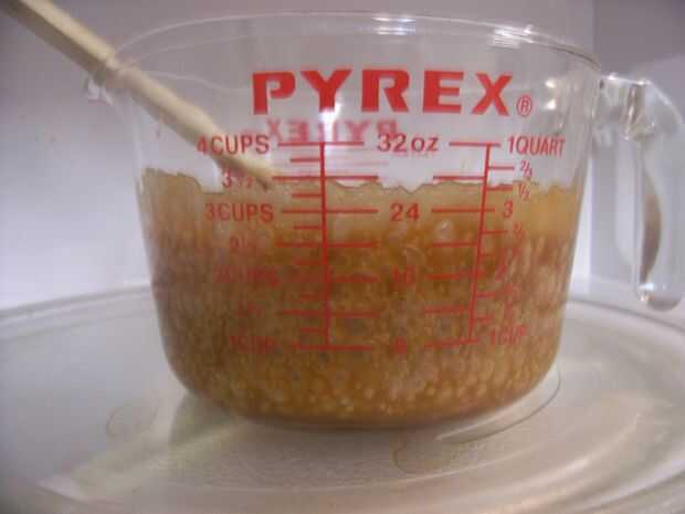 Volver bolsa al microondas durante 30 segundos más, sacudiendo a costo adicional. Vierta el contenido en un plato a enfriar.