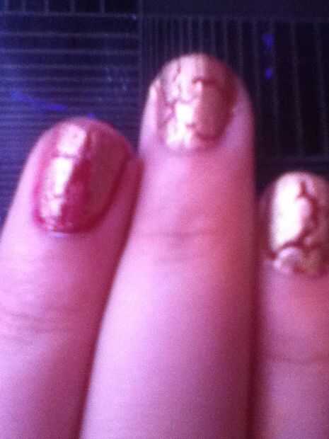 y luego esperas unos 5 minutos hasta que se seca o de lo contrario no funcionará el crujido en esmalte de uñas húmedo.