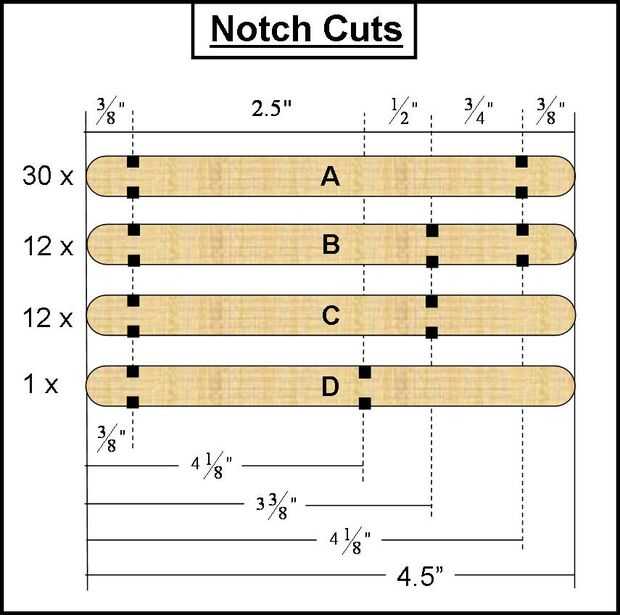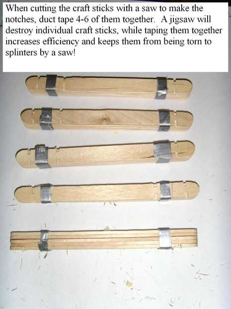 Algunas notas: no tienes que hacerte las muescas - hay ciertos lugares en línea donde usted puede comprar "edificio palos" que encajan entre sí como los que se muestran aquí. Sin embargo, si desea hacerlo usted mismo, simplemente haga los cortes que se muestra en las primeras diapositivas y luego ponerlos todos juntos como se muestra en el resto de las diapositivas. ¡Buena suerte!