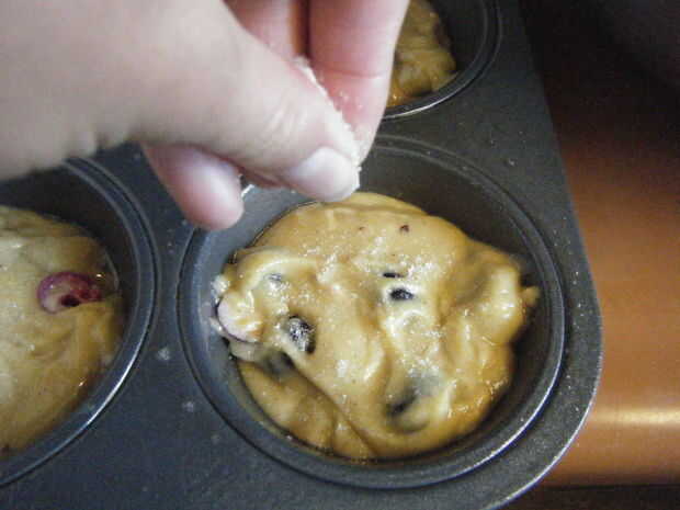 8. Llene el muffin latas de 3/4 completo con la masa.