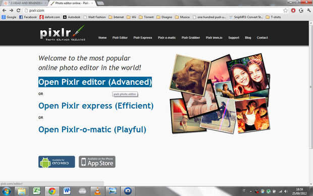 Ahora ir a la web pixlr.com y elija "Open pixlr editor (avanzado)". Luego elegir "subir una imagen desde tu pc", si es la imagen que desea utilizar en el disco duro. Usted puede también búscalo en la web. Al final de este paso habrán subido las imágenes en la Página Web.