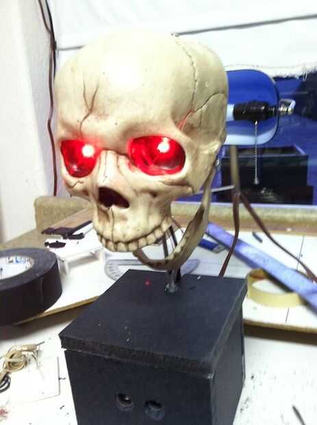 Realmente no pasó mucho tiempo en armar el proyecto. El cráneo está sentado pacientemente en mi mesa de trabajo esperando la próxima víctima a caminar.