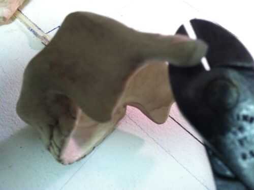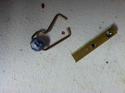Utilicé un cordón cerámico para el seguidor de leva. Dobló un pedazo de alambre de latón para pasar por el talón, ir hacia abajo y coloque en el tubo de latón cuadrado que se mueve la mandíbula.