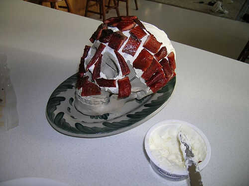 Paso 3: Cortar el salmón y pegarlo sobre el cráneo