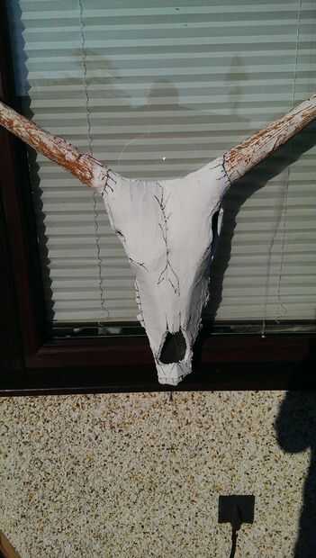 Una vez que el pollyfilla se había secado. Empecé a pintar los cuernos. Usé un lavado con agua luz marrón