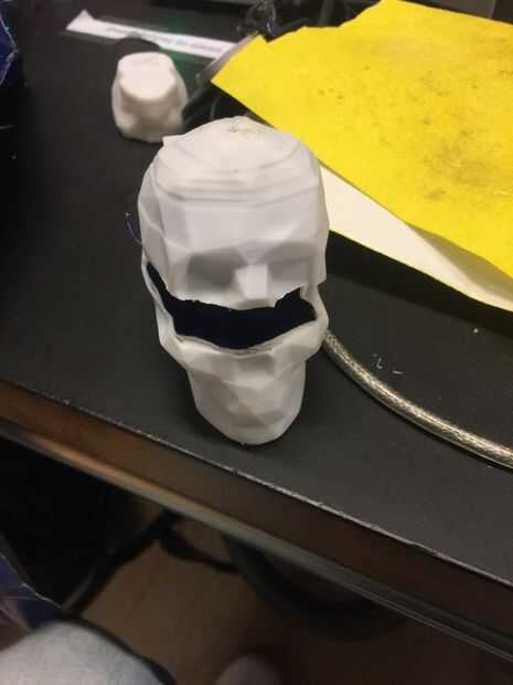 La caja debe tener una bisagra para que pueden mover la parte superior y parte inferior del cráneo entre sí. Utilizando los criterios del curso el cráneo debe tener un circuito eléctrico (LED para los ojos).