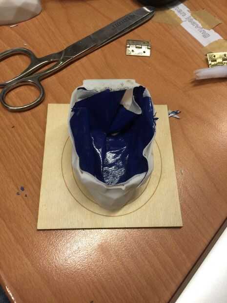 Quería darle el cuadro una sensación de lujo. Así que compré algunos azul de piel (sintética) y se utiliza cubierta interior de la caja. Usé pegamento para sujetar el cuero en el cráneo.