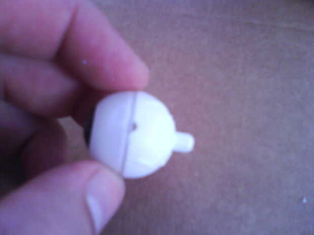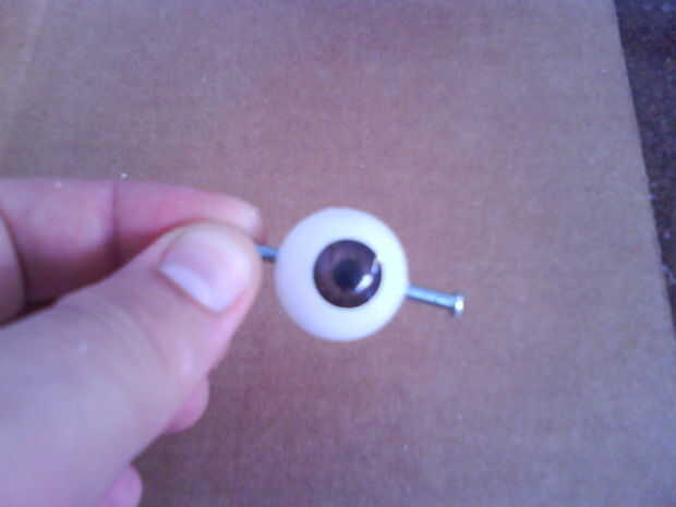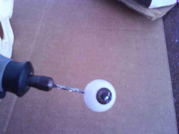 Inspirado por Achmed el terrorista muerto, marionetas de jeff dunham´s, decidí hacer los ojos moverse sólo hacia los lados. Por lo tanto, sería más fácil de montar. Solo aumento el agujero está en el ojo con la ayuda de un taladro.