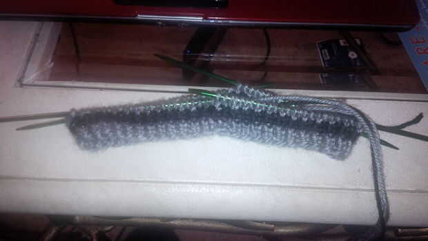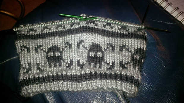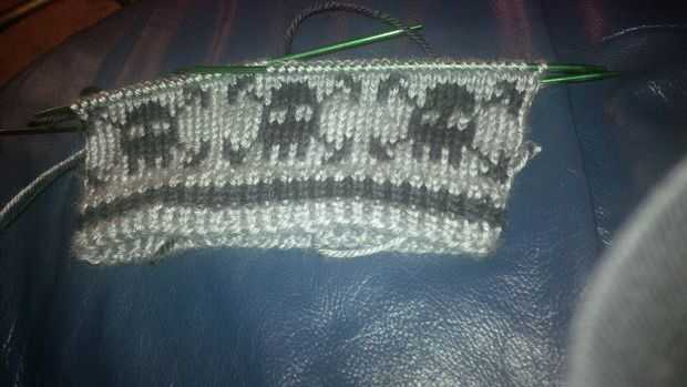 Después de que el último patrón es trabajado, he seguido un patrón de color de 6 filas en el color principal y 3 filas de color contrastante.