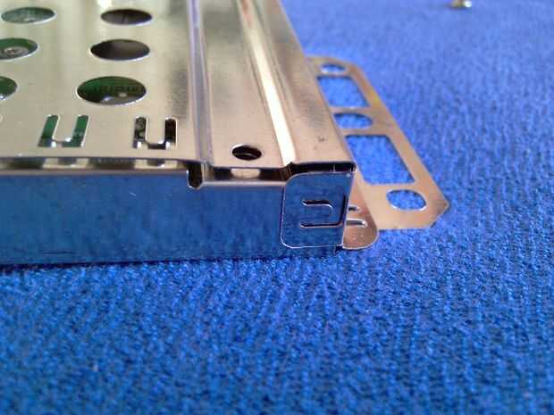6. parte más difíciles, tienes que colocar el disco duro de alguna manera, así que usted puede atornillar los tornillos en. Después del primer tornillo no debe haber un problema más. Sugiero para los primeros 2 tornillos diagonalmente para estabilizar el caso.