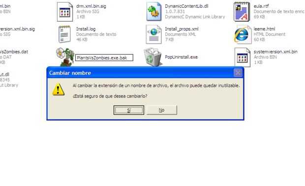 ¿Ahora, recuerde que el archivo falso que te dije hace un rato? bien ahora lo haga y haga clic en la opción de cambiar nombre. no cambia nada en el nombre excepto escribiendo "bak" en el final de la misma. Por ejemplo, si el juego se llama Pixelus, entonces ahora el nombre del archivo debe ser:
