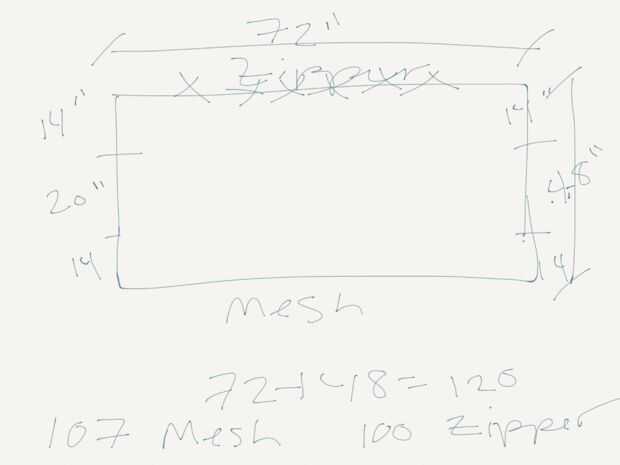 Entonces decidí que quería que la malla sea la misma longitud que la cremallera (por poner el cojín de cierta simetría). Básicamente esto iría a lo largo del lado largo del cojín y envolver a cada lado. Cortar la malla en las tiras de 9" hasta que tuve suficiente para 100" (en mi caso 2 piezas trabajadas).