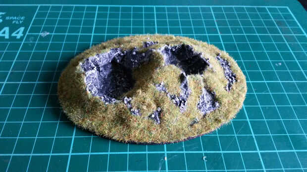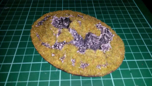 Cuando se haya secado el varish, cepillo PVA en las áreas que está planeando al rebaño con la hierba.