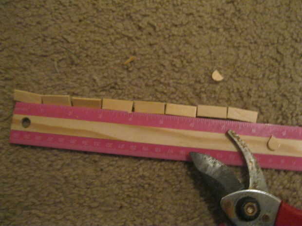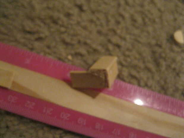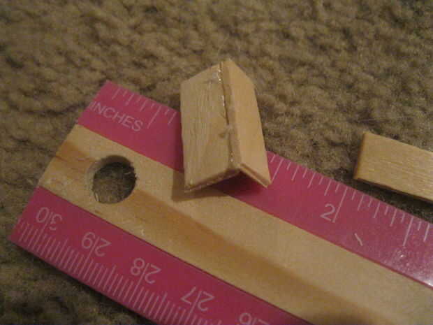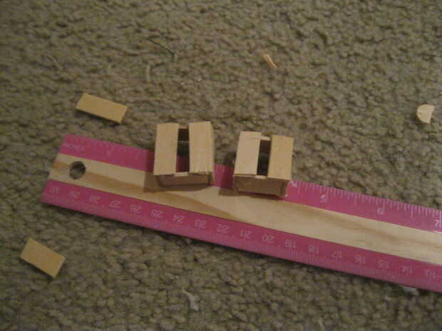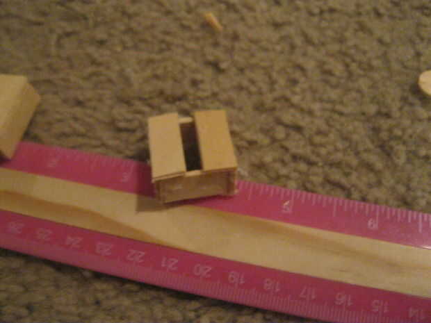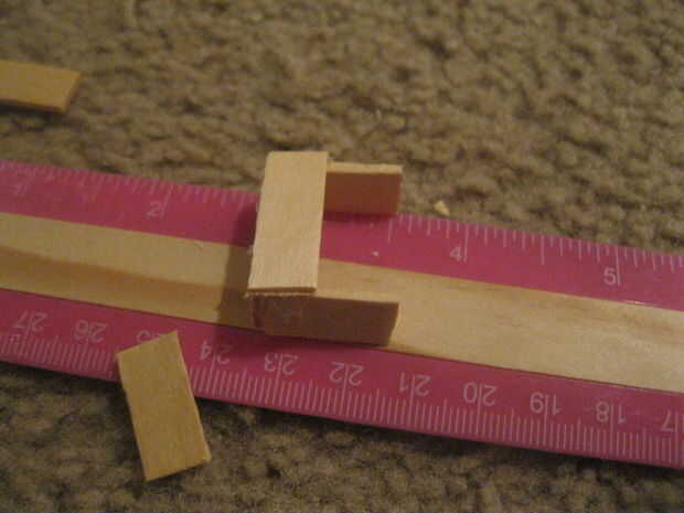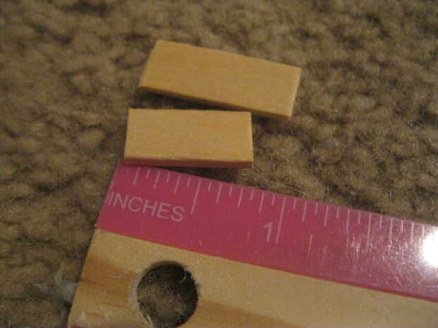 La segunda pieza es más gruesa que la primera. Cortar cuatro segmentos de una pulgada y dos 3/4 de una pulgada de segmentos. Las piezas de pegamento dos de una pulgada y repita. (imagen 4) Cola 3/4 pulgada de piezas en el interior las esquinas. (cuadro 6 y 7) Ahora sólo tiene que añadir la última pieza. (cuadro 8)