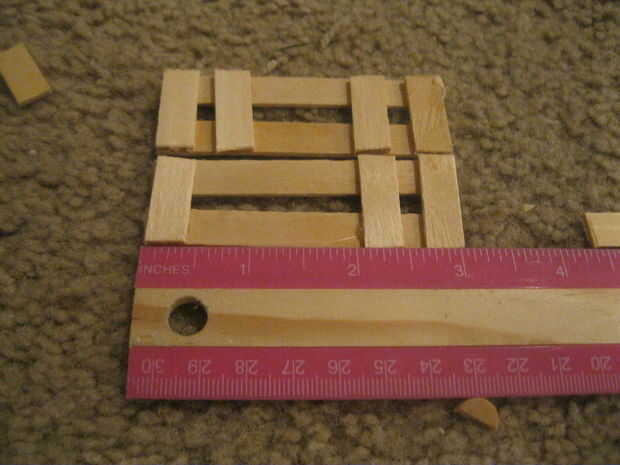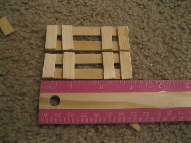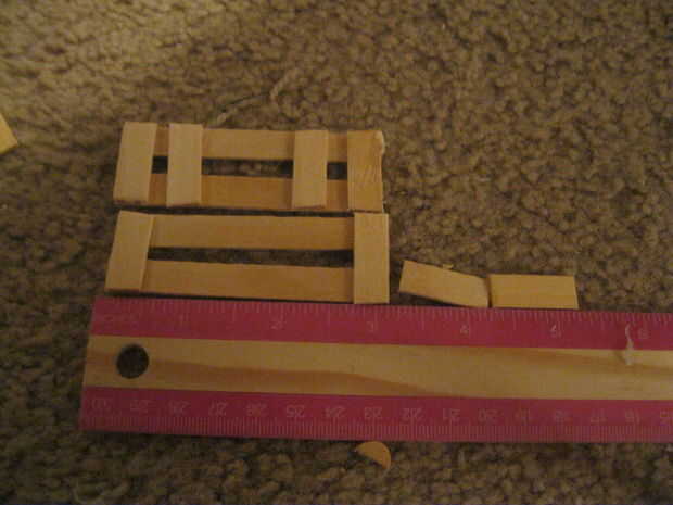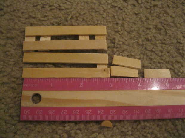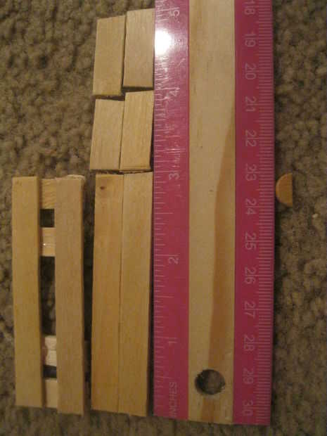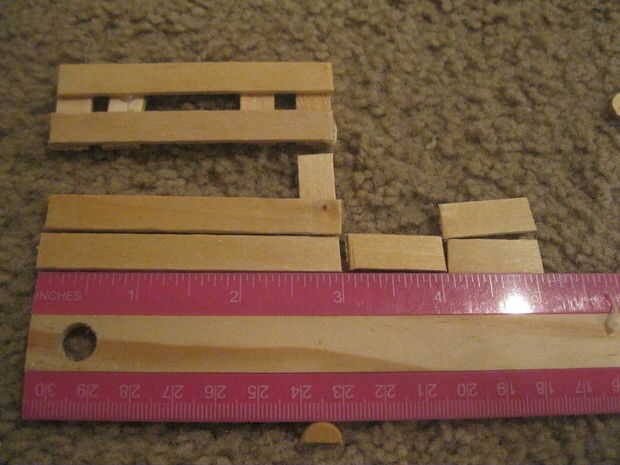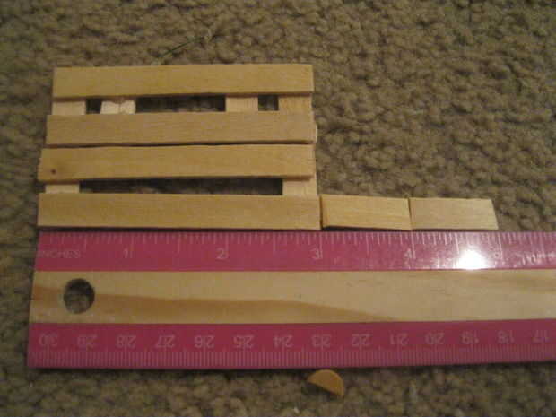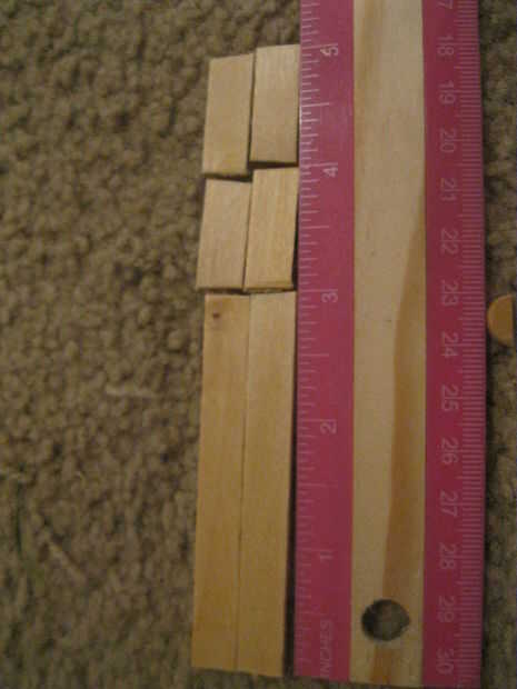 La tercera pieza es tres veces más larga que el 1 º. Corte dos pedazos de tres pulgadas y cuatro pulgadas de una sola pieza. Pegar pedazos de una pulgada de ambos extremos de la pieza larga. Luego pegar las dos piezas de una pulgada en los interiores de las otras piezas de una pulgada. Debe medir una pulgada del extremo en el interior pieza de una pulgada.