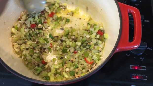 Este sabroso Fettuccine de cangrejos de Cajun es una comida fantástica que altamente sugerimos que pruebe. No te arrepentirás.Paso 1: ingredientes3 cebollas picadas3 tallos apio picado2 pimiento picado2 dientes de ajo3 palillos de la mantequilla1/4 t