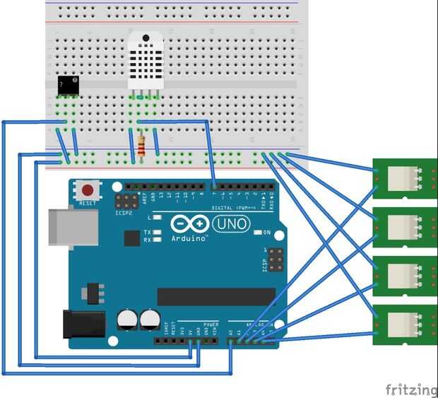 La mayoría de estas conexiones puede ordenarse como quieras. La única crítica es el cable de salida de las necesidades de sensor de luz para ir a un pin analógico. Este pin-out a trabajar con mi código como escrito.