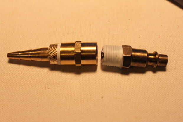 De nuevo, utilice la cinta de teflón en las roscas. Entonces attatch rápida conectar al acoplador de cobre amarillo.