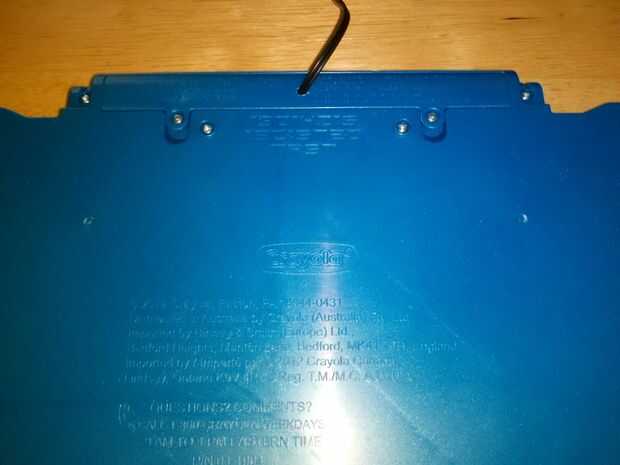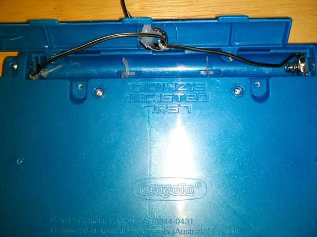 Crayola Light-Up seguimiento Pad (Walmart USD 20,00) destornillador pequeño pedacito de taladro pequeño taladro Tijeras para alambre DC 4, 5V 400mA alimentación (USD 30,00 Radio Shack) tenia uno de un teléfono antiguo o algo. de la soldadura soldadura de hierro palillo caliente del pegamento pistola de pegamento caliente