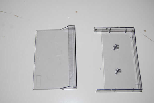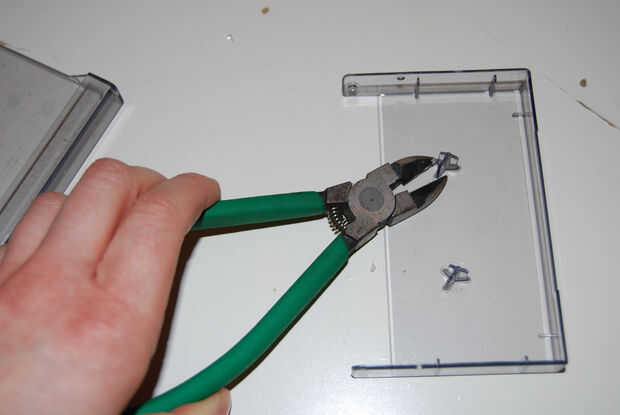 2) corte de ambos pernos dentro de la caja de la cinta de cassette con el cortador lateral