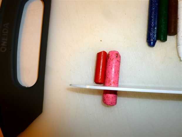 Elegí uno de los creyones rotos y cortar las ceras restantes a ese tamaño. No estoy seguro si eso ayudó, pero creo que uniformar a las gotas de crayón.