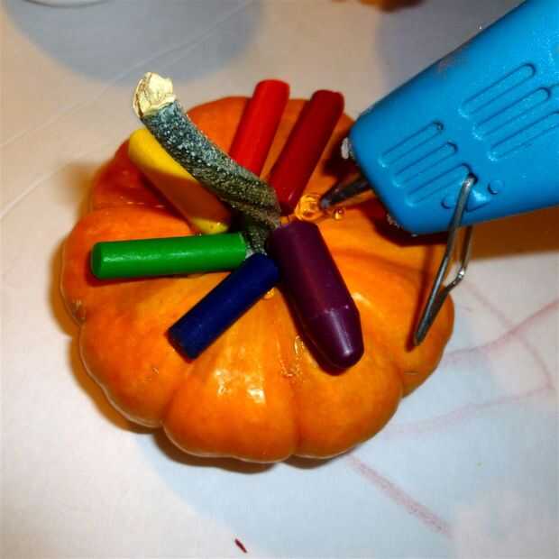 Paso 3: Pegamento crayones para calabazas