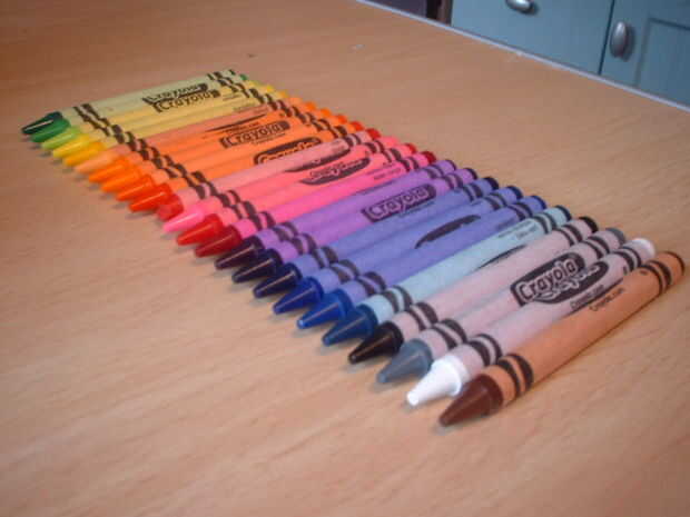 Una caja de crayones de cera