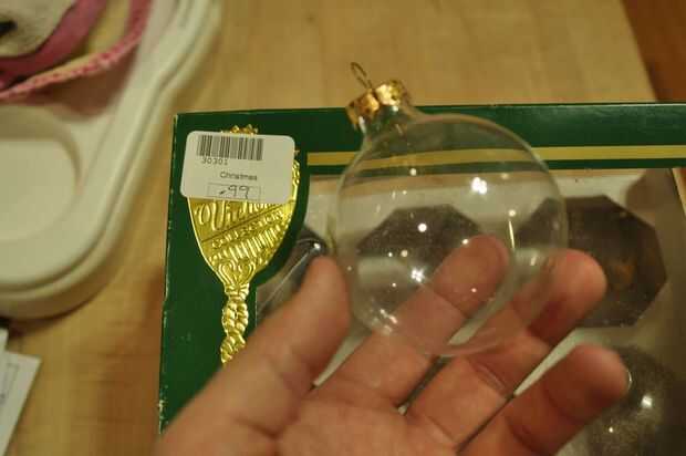 Adornos de árbol de Navidad de vidrio claro (disponible en tiendas de artesanía o estacionalmente con decoraciones)
