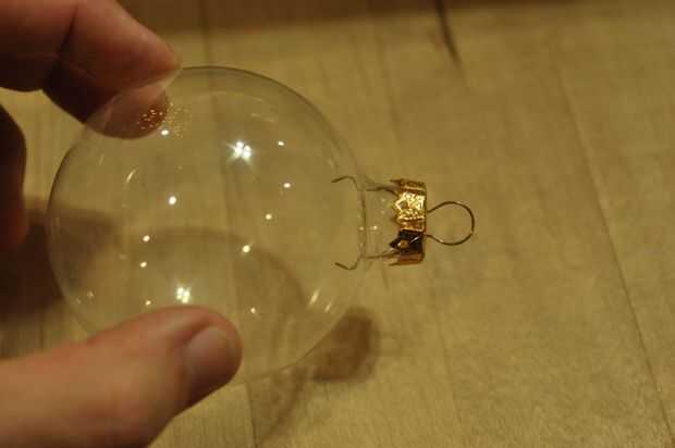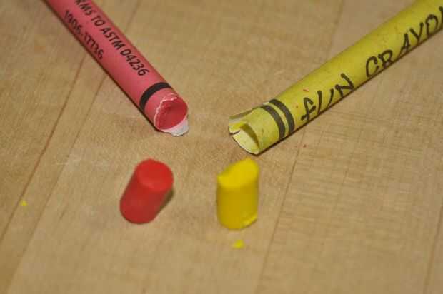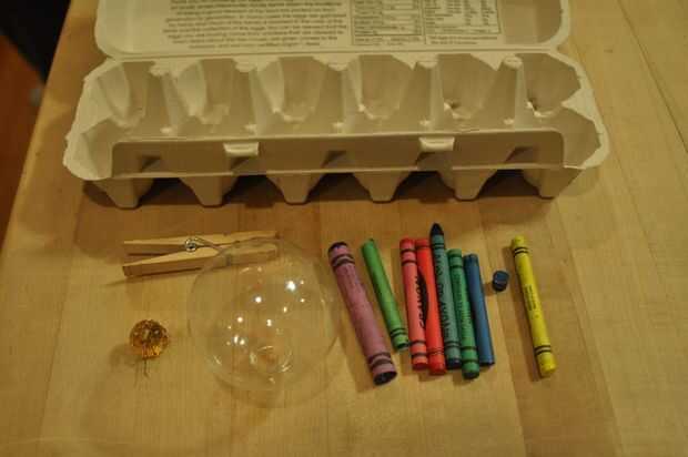 A continuación, poner dos trozos de lápices de colores (cada uno de dos colores diferentes) dentro de un adorno.